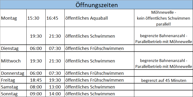 seit der Eröffnung im April hat sich unser Hallenbad sehr gut in das Freizeitangebot am Möhnesee integriert. Nach dem erfolgreichen Abschluss des Testbetriebs, den die Schulklassen durchgeführt haben, bieten nun auch Schwimmvereine sowie -schulen verschiedene Kurse an.