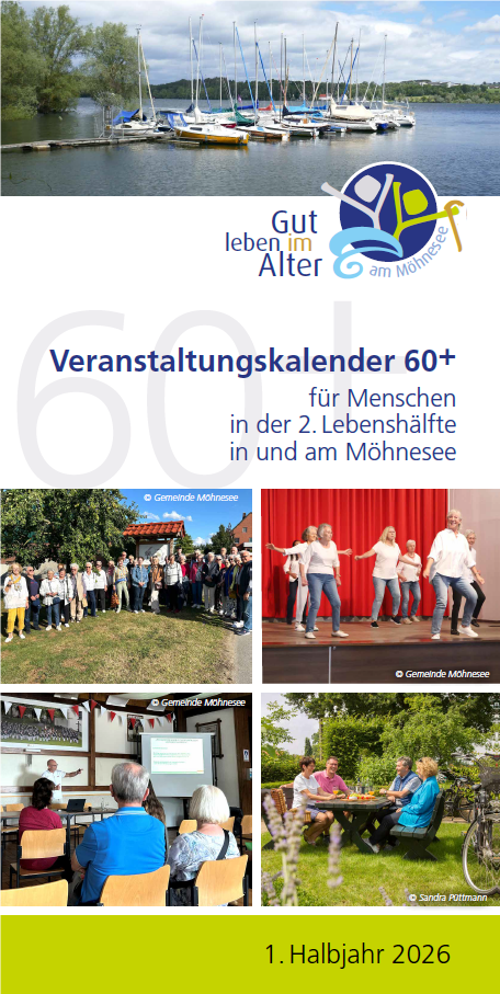 Der Veranstaltungskalender 60+ beinhaltet die gewohnte Übersicht über bevorstehende Veranstaltungen und Treffen der verschiedenen Gruppen und Vereine rund um den Möhnesee.