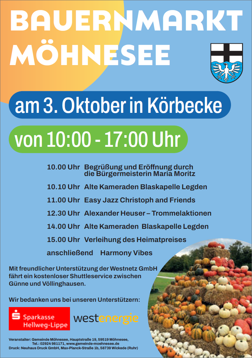 Der Bauernmarkt in Möhnesee-Körbecke findet traditionell am 3. Oktober, dem Tag der Deutschen Einheit, statt.