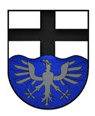 „Von Silber (Weiß) zu Blau im Wellenschnitt geteilt;